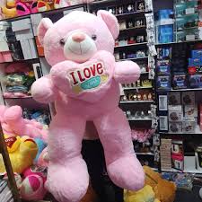מידע נוסף על דובי בובת פרווה 1 מטר אורך "I LOVE YOU" / מיקס לבן וורוד